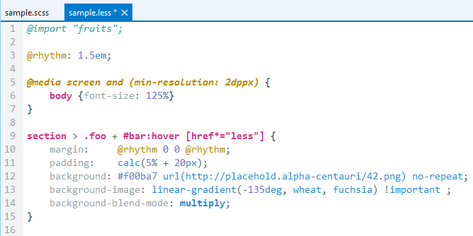 Easily work with SASS or LESS source files. Full syntax highlighting and most of the regular CSS features are available in SASS and LESS files.